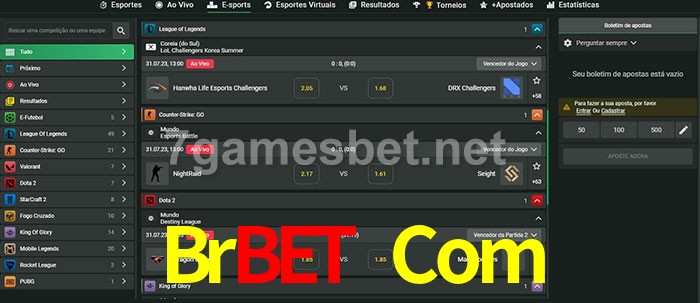 O Brbet Com oferece uma grande seleção de opções de apostas em e-sports com probabilidades competitivas